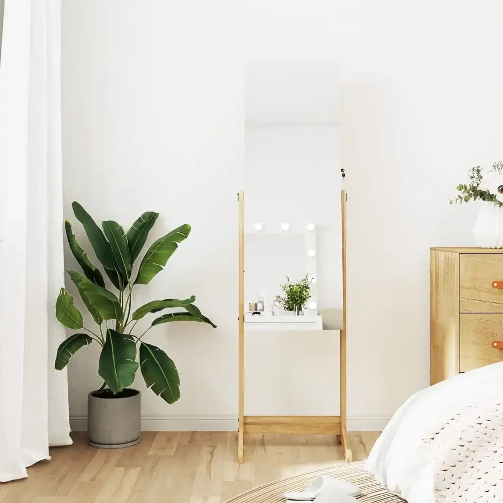 Armoire à bijoux miroir sur pied avec rangement intérieur et miroir rotatif