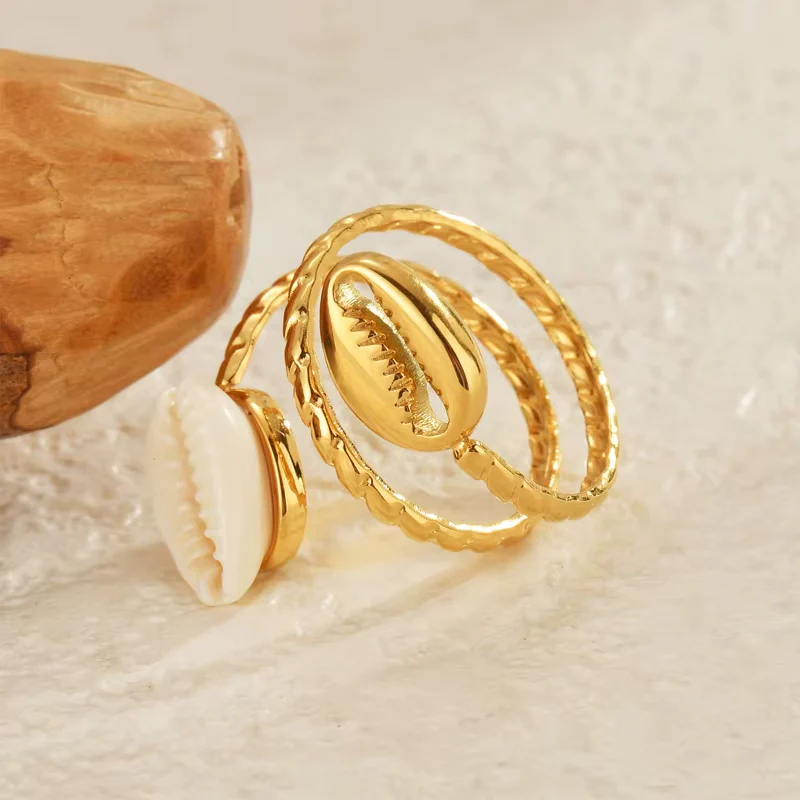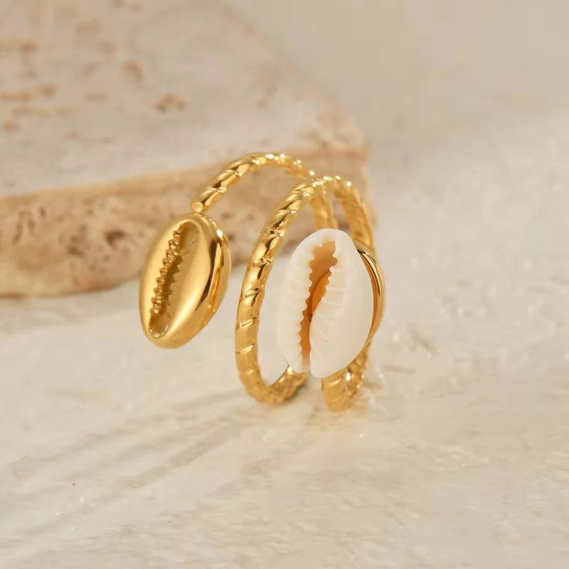 Soyez le premier à laisser votre avis sur “Bague Coquillage Dorée avec Cauri”