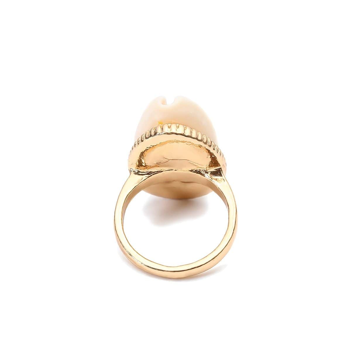 Quand on parle de classe et de tendance, c’est cette bague coquillage dorée qui nous vient à l’esprit. Sobre et discrète, elle s’adaptera à toutes vos tenues. En plus, son petit cauri s’associera parfaitement à votre peau ! Son anneau est finement gravé de motifs tendances, d’une jolie couleur dorée qui s’accordera facilement à vos doigts. Nous préconisons d’enfiler ce bijou coquillage avec un bracelet de la même teinte et un haut clair.