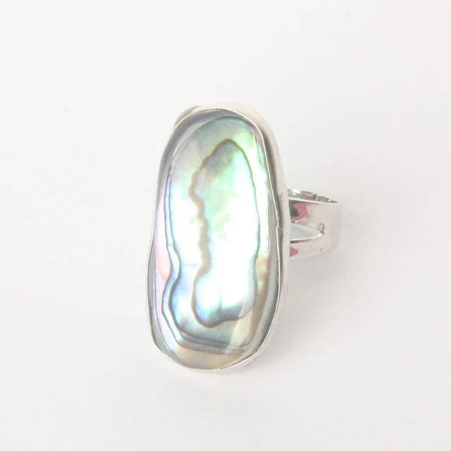 Avec ses couleurs irisées, cette bague coquillage nacre est faite pour vous ! Blanche de nature, elle possède cependant de jolis reflets bleus et jaunes qui illumineront votre look et vos mains ! D’ailleurs, la nacre était très utilisée pour fabriquer des bijoux dans l’antiquité. Pourquoi ne pas porter ce bijou coquillage avec une robe noire fine longue, à l’annulaire ?