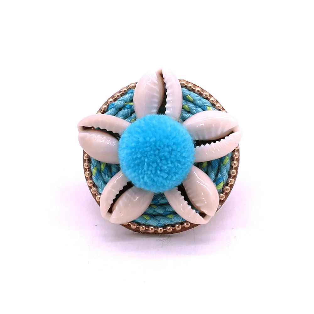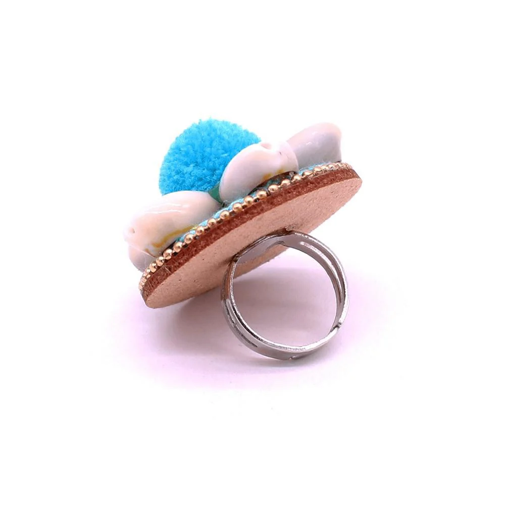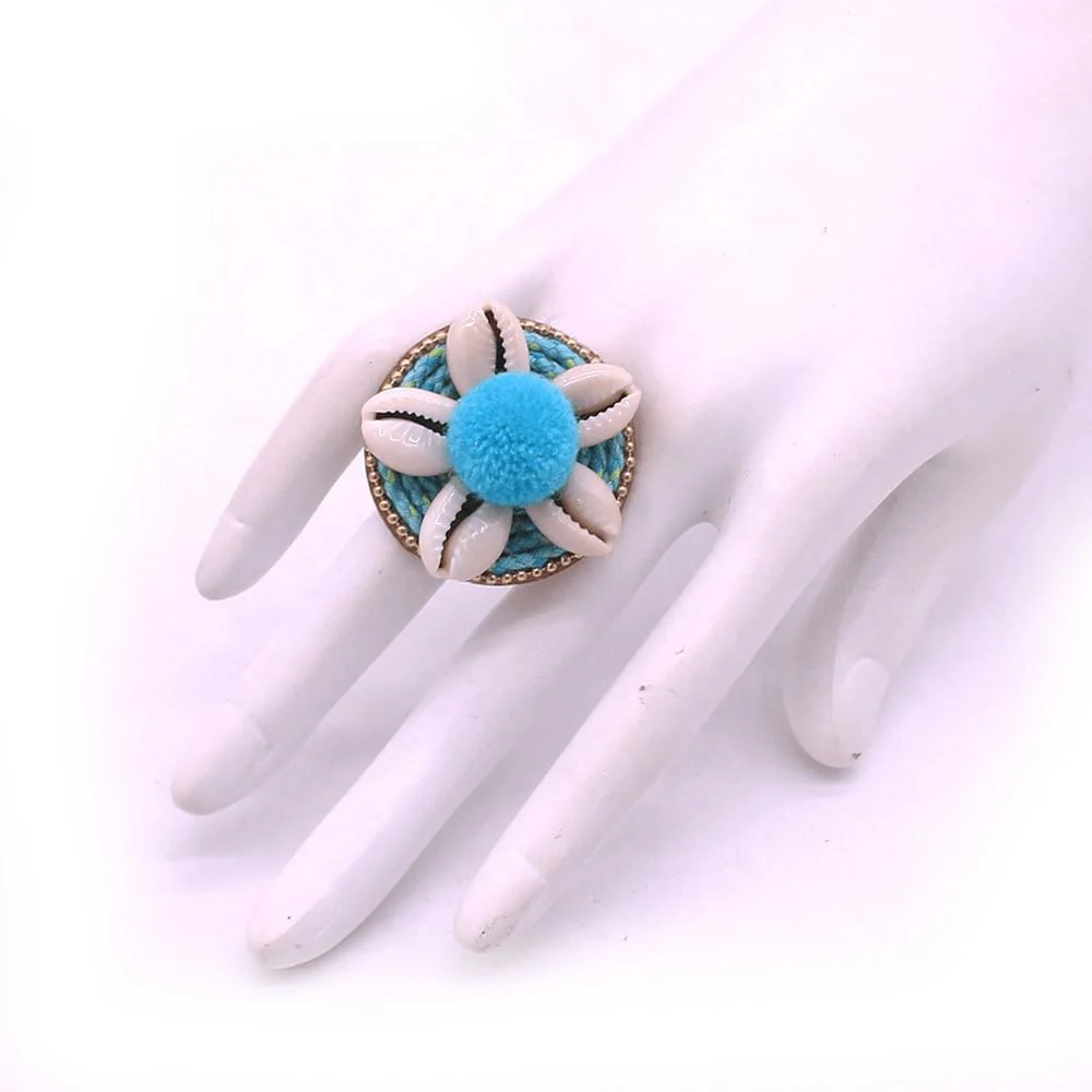 Bague coquillages doigt cauris et finitions bleues