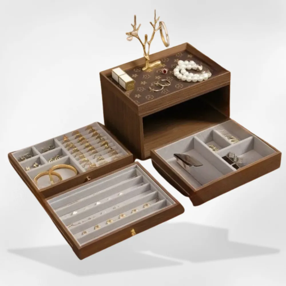 Organisateur discret pour coiffeuse 🪞, il limite le fouillis et protège chaque bijou. Cette Belle Boîte à Bijoux en bois allie capacité et maniabilité pour une collection toujours ordonnée.