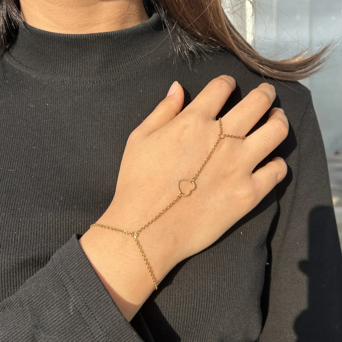 Bijou de main à cœur central, en acier inoxydable, pour femme, modèle Dona