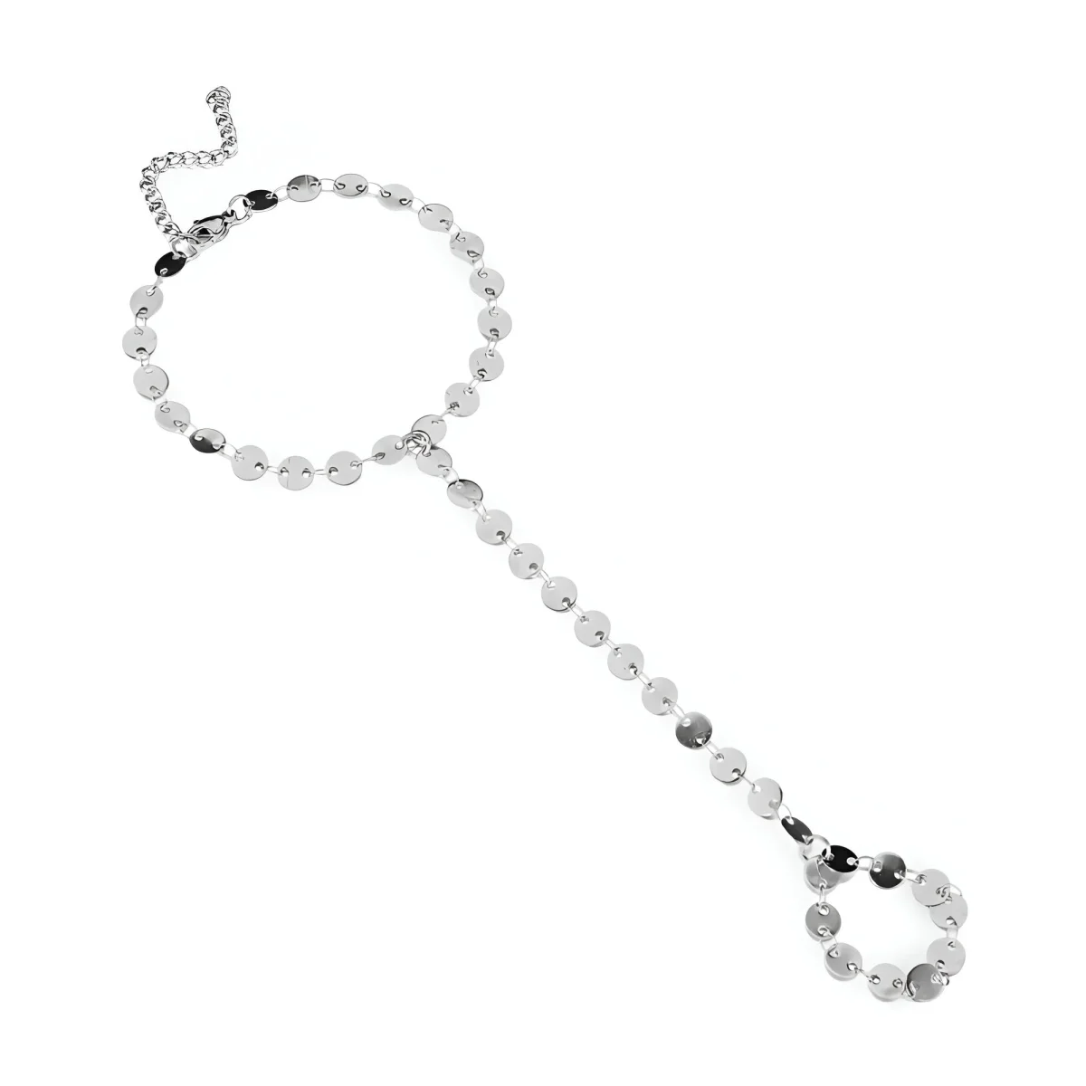 Ce bracelet chaîne de doigt offre une allure unique grâce à son design délicat et moderne. Conçu avec des médaillons lisses en acier inoxydable, il capture la lumière sous chaque angle, révélant un éclat subtil qui ne manquera pas de séduire. Sa structure ajustable s’adapte parfaitement à la forme de votre poignet et de votre doigt, garantissant un confort et une aisance de mouvement en toute circonstance.