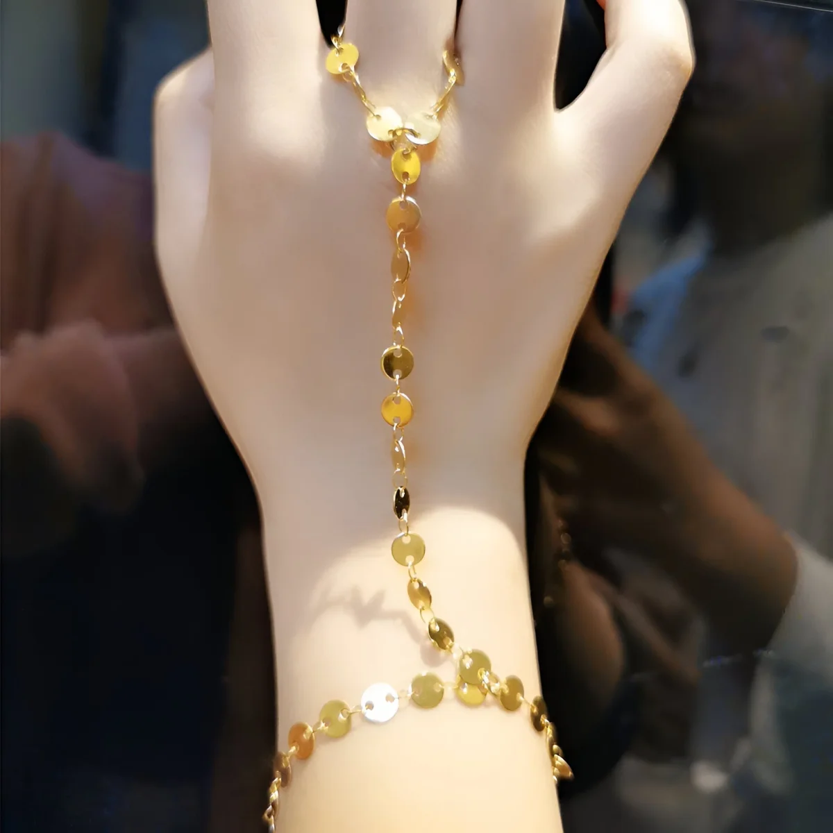 Avec son fermoir mousqueton discret et sécurisé, ce bracelet est facile à enfiler et à retirer tout en assurant une tenue impeccable tout au long de la journée. La chaîne reliant le bracelet au doigt apporte une touche d’originalité et de raffinement, en faisant un accessoire parfait pour sublimer vos tenues de jour comme de nuit. Les médaillons délicatement reliés entre eux forment un ensemble harmonieux qui sublime la féminité avec élégance.