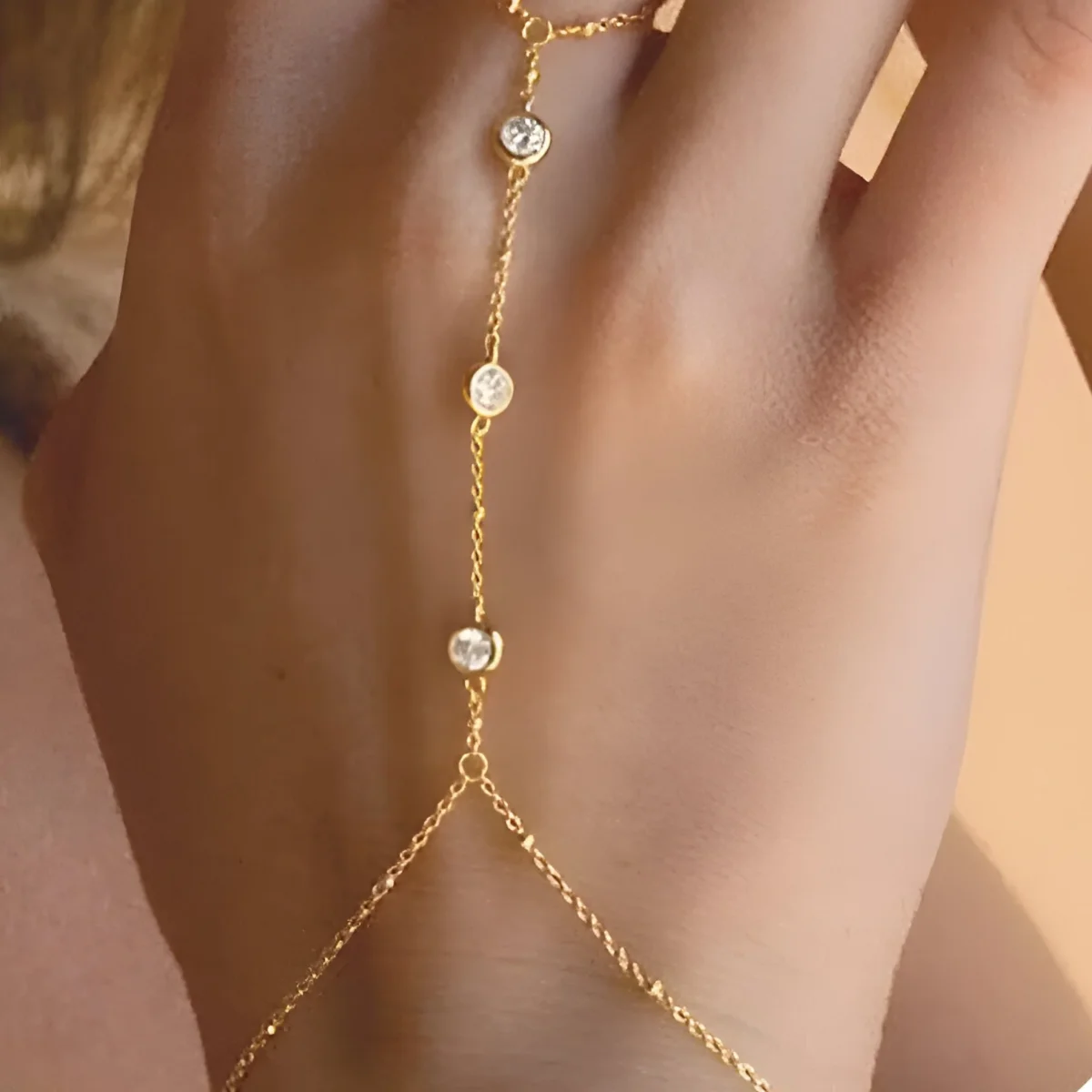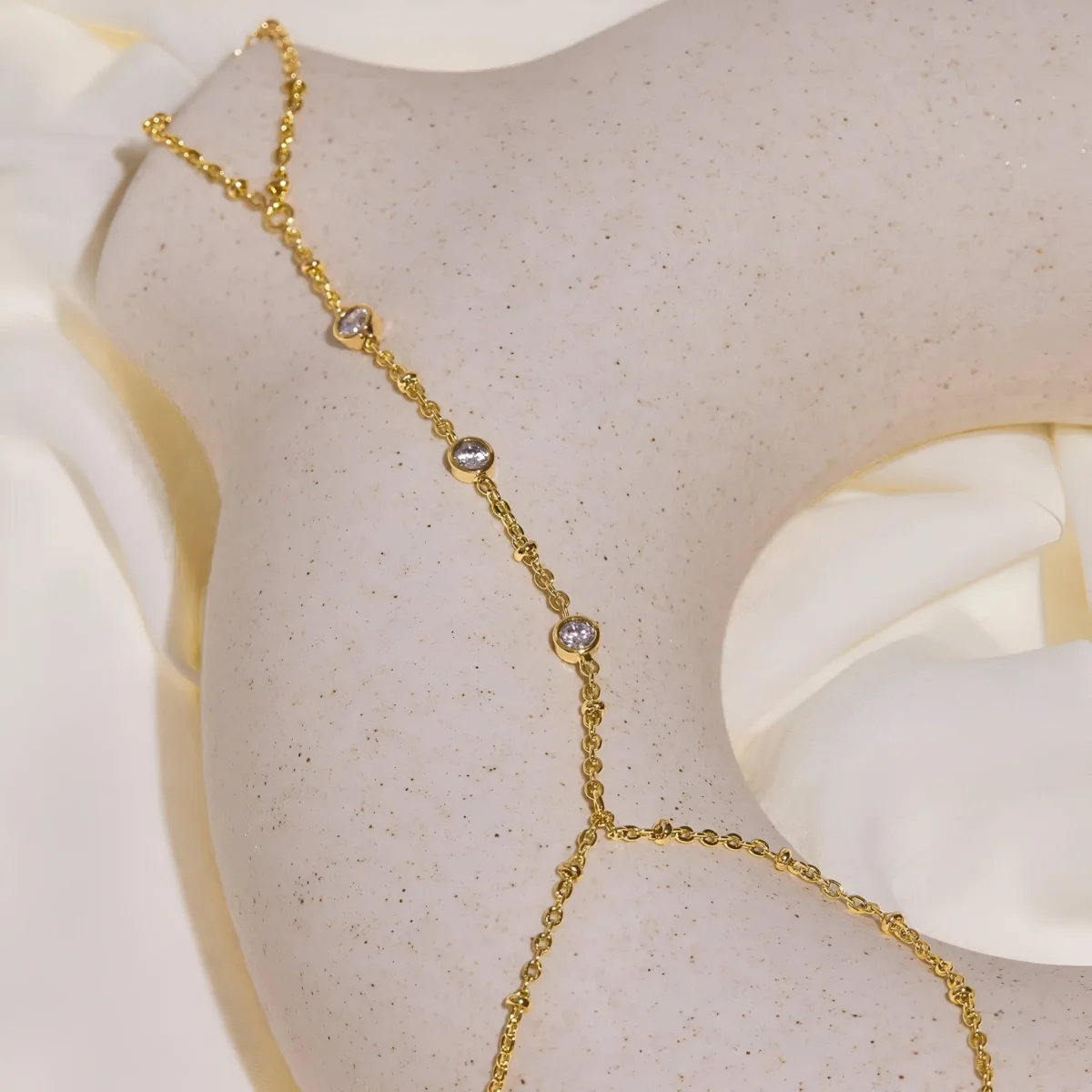 Le design raffiné de ce bracelet se distingue par sa simplicité élégante et son allure sophistiquée. Chaque maillon est minutieusement travaillé pour offrir une finition impeccable, créant une harmonie parfaite entre la chaîne de doigt et le bracelet. La subtilité du plaqué or rehausse son éclat naturel, faisant de ce bijou un accessoire incontournable pour toutes les occasions.