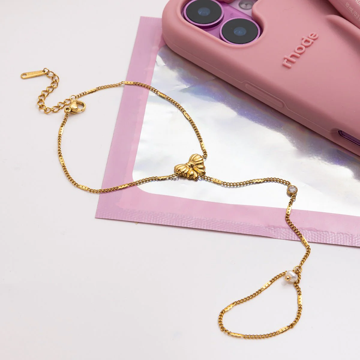 Ce bracelet unique en son genre épouse la main avec une grâce hypnotique. Sa chaîne fine en acier inoxydable plaqué or enlace le poignet et s’étend jusqu’au doigt, formant un délicat trait doré qui capte la lumière à chaque mouvement. En son centre, un motif papillon sculpté déploie ses ailes avec légèreté, incarnant l’élan spontané d’une liberté assumée.