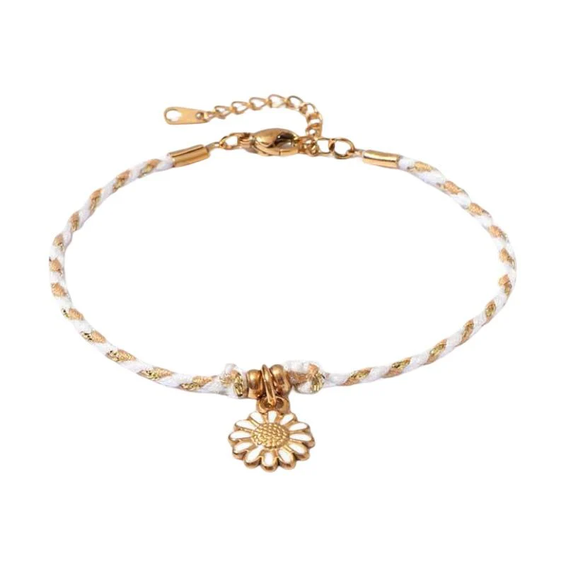 Combinant la résistance de l’acier inoxydable et la souplesse du coton tressé, ce bracelet offre un équilibre parfait entre solidité et esthétisme. Le motif floral central évoque l’énergie du soleil et les instants simples de bonheur, comme un clin d’œil à la nature et aux émotions douces. À la fois léger et expressif, il accompagne les gestes quotidiens avec discrétion et éclat, comme une présence bienveillante au fil des journées.