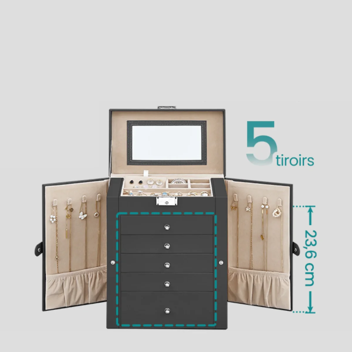 Boîte à bijoux à 6 niveaux avec miroir et serrure
