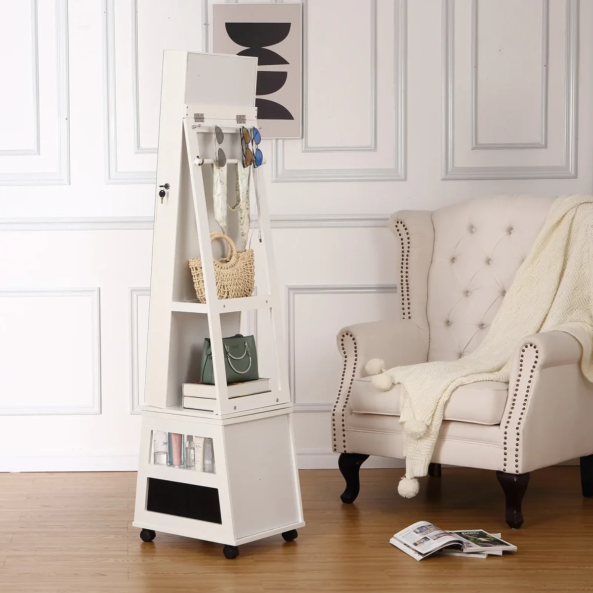 Armoire à bijoux avec miroir rotatif