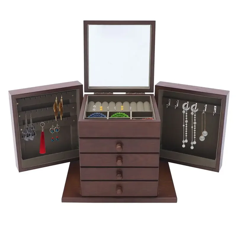 Boîte à bijoux à 6 niveaux avec miroir et serrure