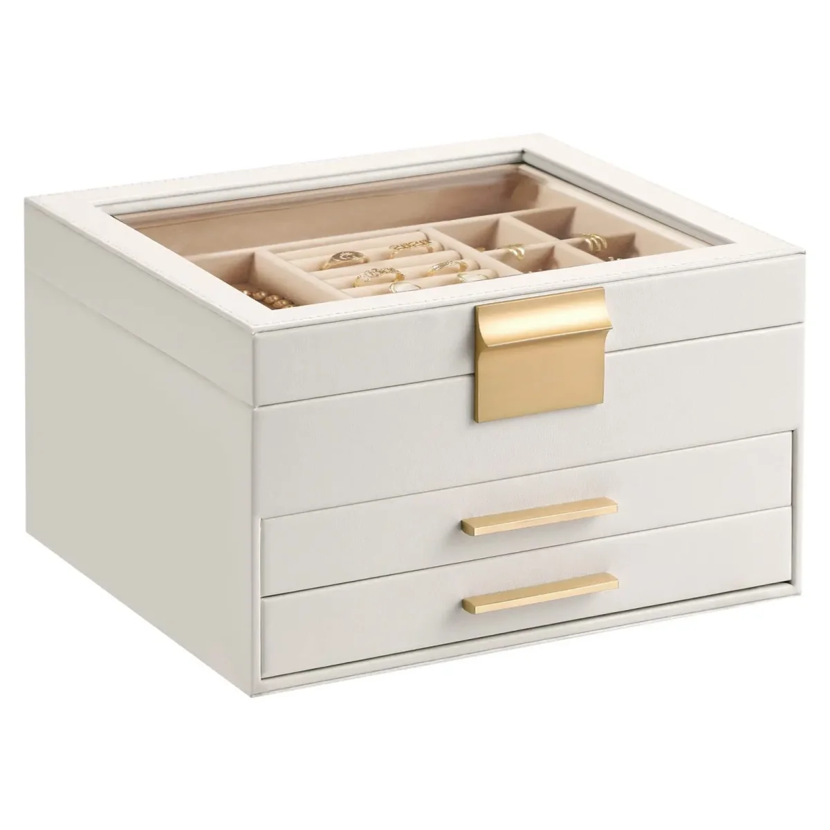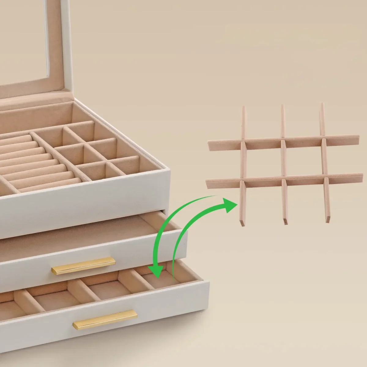 Boîte à bijoux à double niveau blanc / Camel