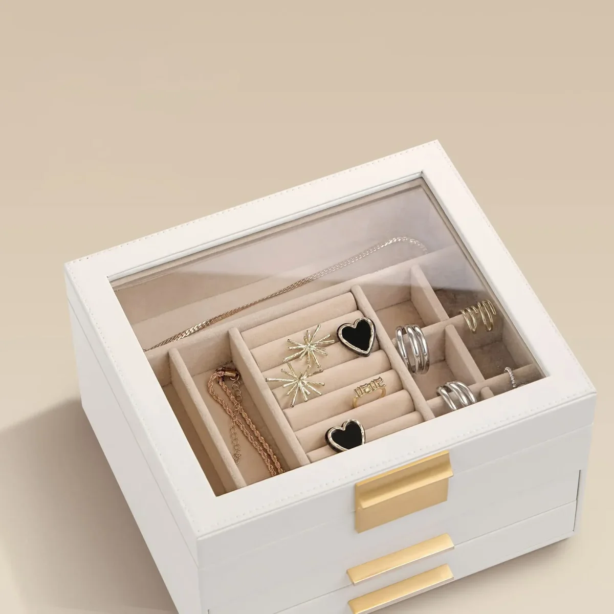 | Organisation dédiée aux boucles d’oreilles | Chaque paire reste à sa place : fin du désordre, plus de bijoux mélangés ou perdus. |