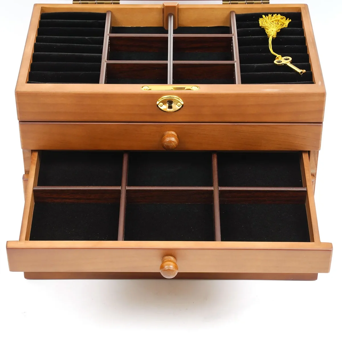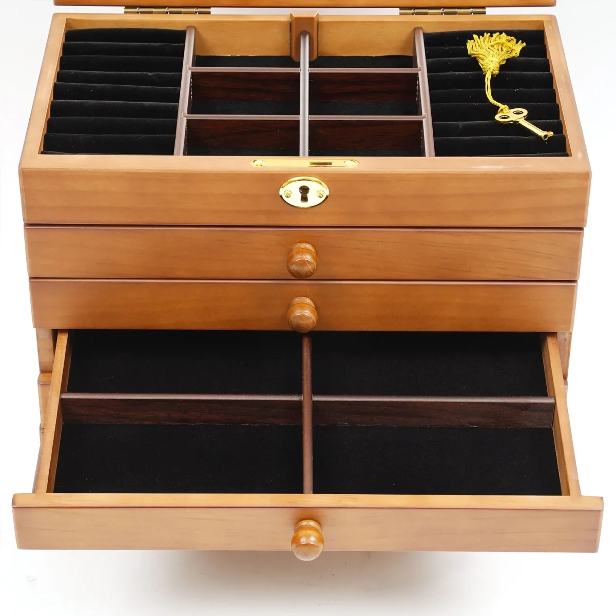 Boîte à bijoux en bois 6 niveaux avec miroir & tiroirs sécurisés