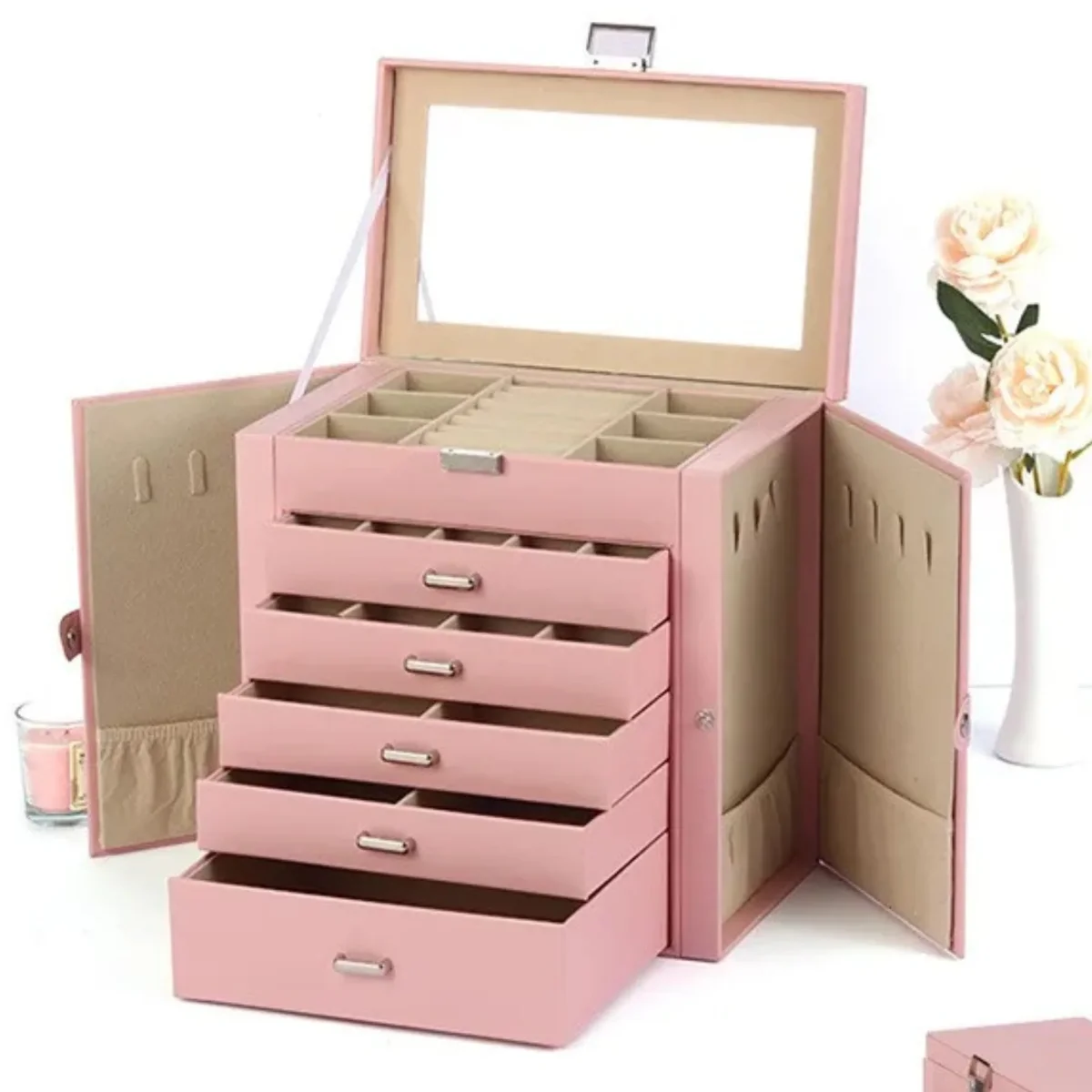 Boîte à bijoux à 6 niveaux avec miroir et serrure