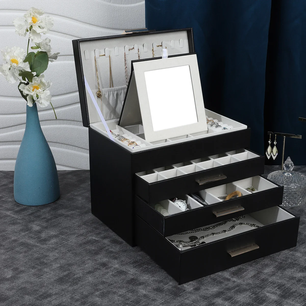 Boîte à bijoux 4 niveaux avec miroir intégré