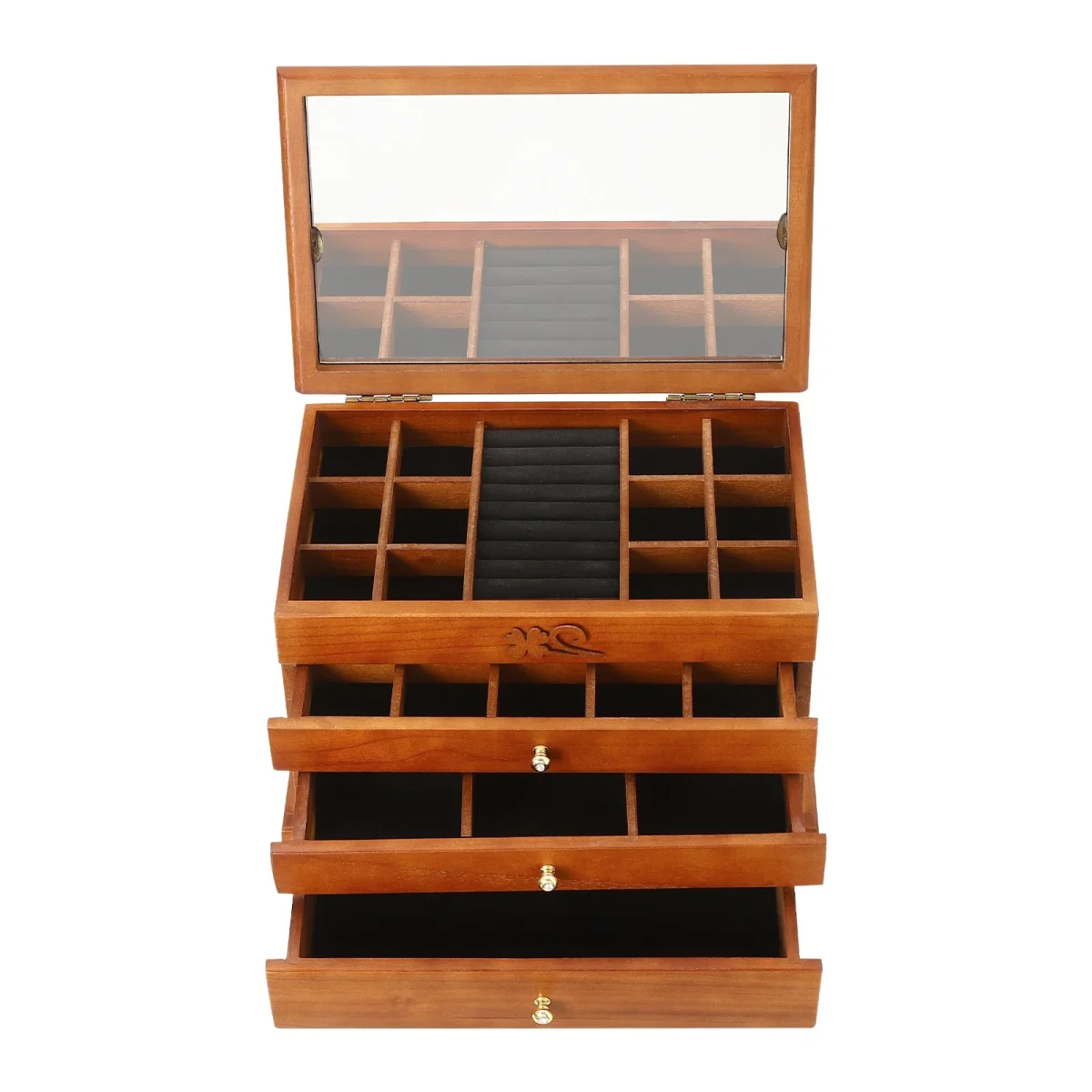 Boîte à bijoux raffinée en bois et velours – 4 tiroirs de rangement