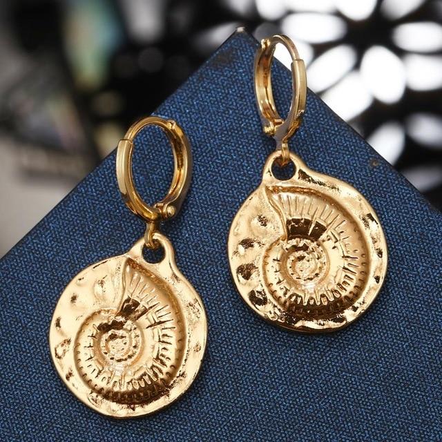 Optez pour un bijou tendance avec ces boucles d’oreilles coquillage escargot ! En forme d’ammonite, qui est l’ancêtre des escargots marins, vous promet une classe éternelle… En plus, leur couleur dorée vous donnera chic et élégance. Succombez à ces boucles fantaisies en forme de créoles or avec pendentifs qui sublimeront vos oreilles ! Nous préconisons d’enfiler ce bijou marin coquillage avec un chemisier beige ou noir.