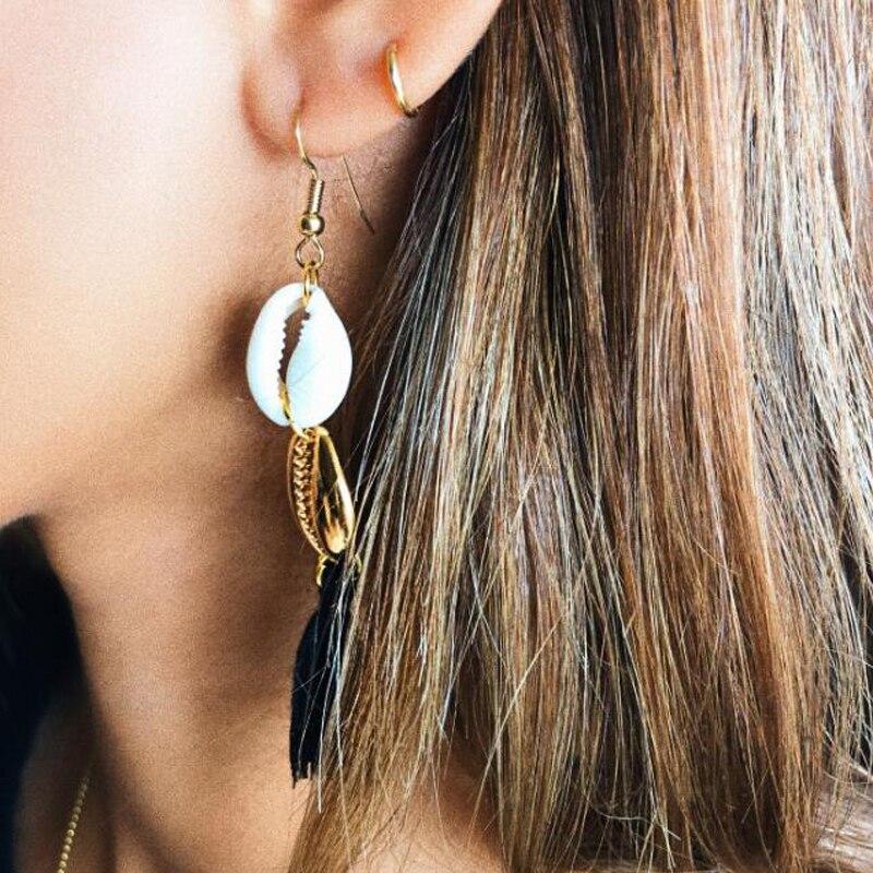 Boucles d’Oreilles Coquillage Pompon Et Cauri