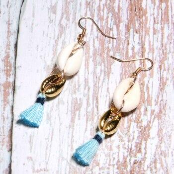 Boucles d’oreilles coquillage bleu vague et cauri blanc