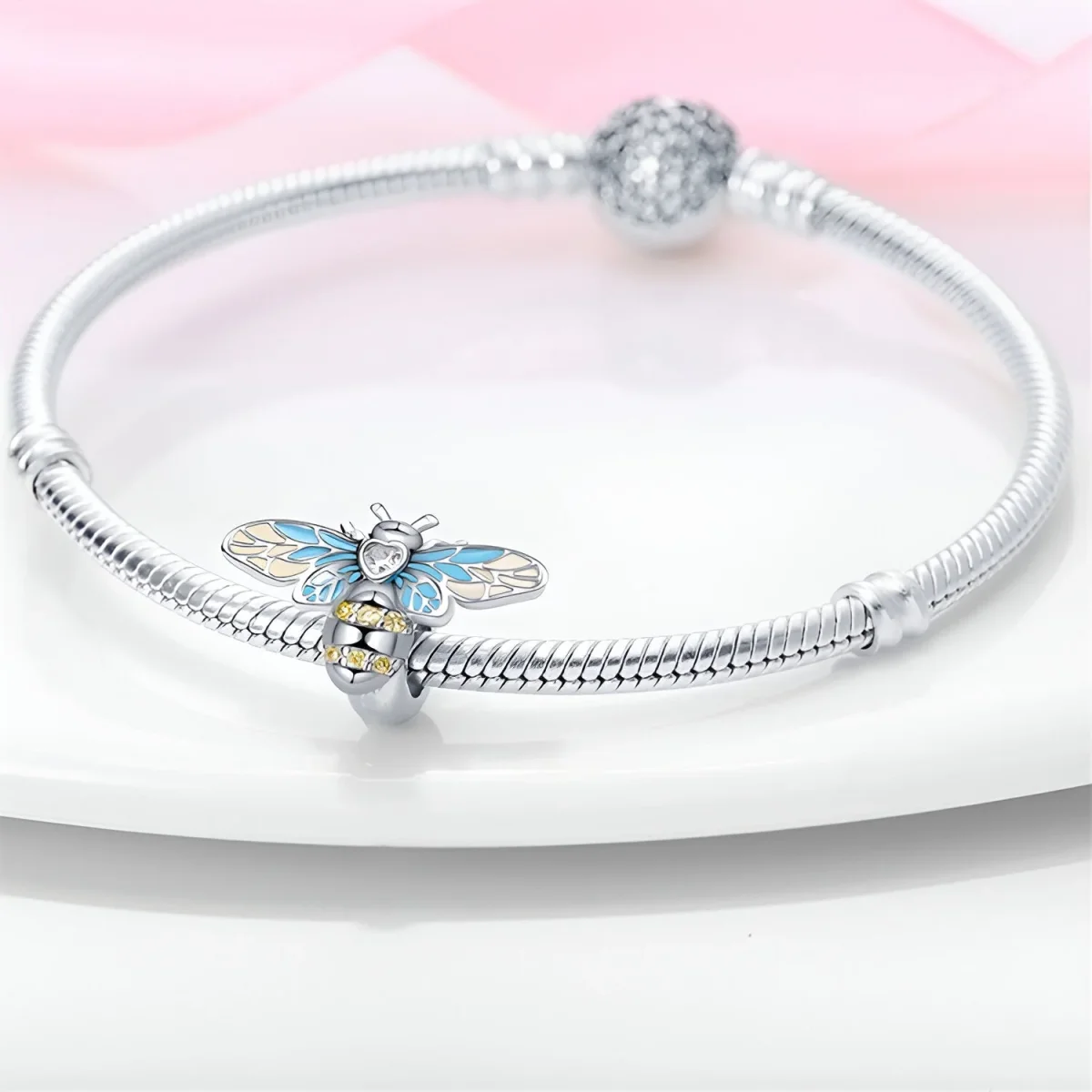 Les ailes délicates de l’abeille, peintes à la main en émail bleu et crème, ajoutent une touche de couleur vibrante et élégante. Ce mélange de matériaux et de couleurs confère au charm un aspect à la fois raffiné et joyeux, parfait pour ajouter une note distinctive à votre bracelet.