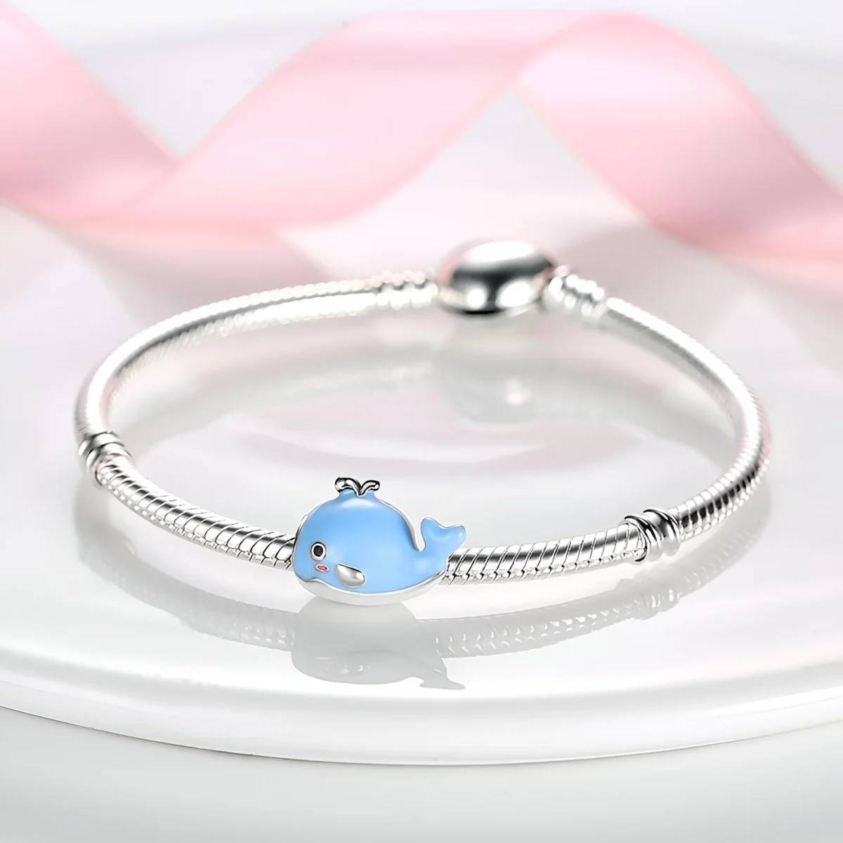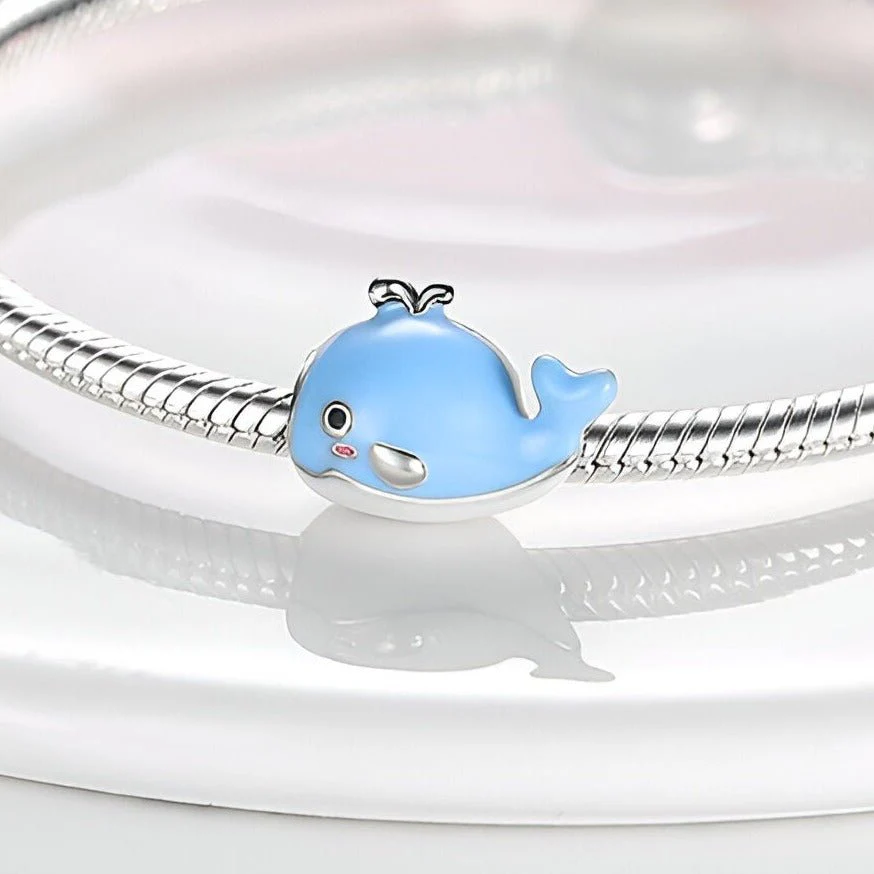 Ce charm se distingue par son magnifique motif de baleine en émail bleu, aux détails finement sculptés et réalistes. Le bleu doux de l’émail capture la sérénité et la beauté de l’océan, tandis que la finition polie en argent ajoute une touche de brillance. Les yeux expressifs et la nageoire délicatement sculptée de la baleine confèrent à ce bijou une allure unique et pleine de caractère.