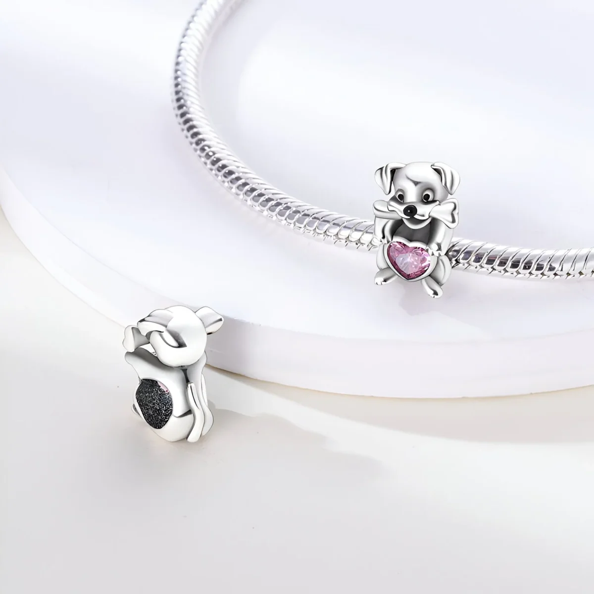 Charm chiot tenant un coeur, pour femme, modèle Rouky