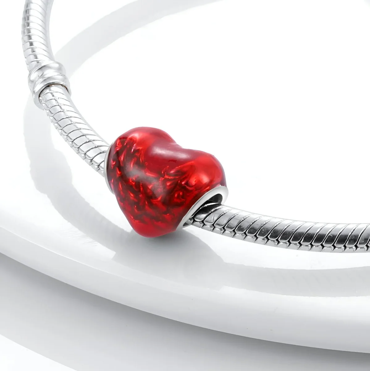 Ce charm se distingue par son magnifique cœur rouge vif, avec une finition brillante et lisse qui capte et reflète la lumière à chaque mouvement. La texture subtile du cœur ajoute de la profondeur et un effet visuel saisissant, rendant ce bijou unique et irrésistible. Le contraste entre le rouge éclatant et l’argent poli crée un effet harmonieux et élégant.