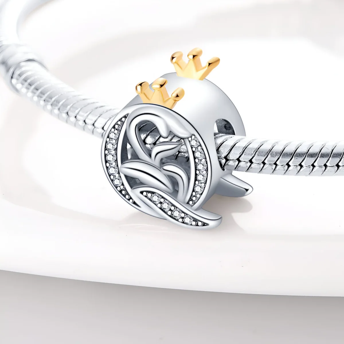 Ce charm en cuivre plaqué argent, délicatement façonné en forme de lettre et surmonté d’une couronne dorée, est une pièce unique qui ajoute une touche de royauté à votre bracelet. Chaque lettre est finement travaillée pour capturer l’élégance et le prestige, rendant ce bijou idéal pour ceux qui souhaitent personnaliser leur collection avec une initiale significative. La couronne dorée, symbolisant la royauté et la distinction, rehausse le design avec une touche de sophistication subtile.