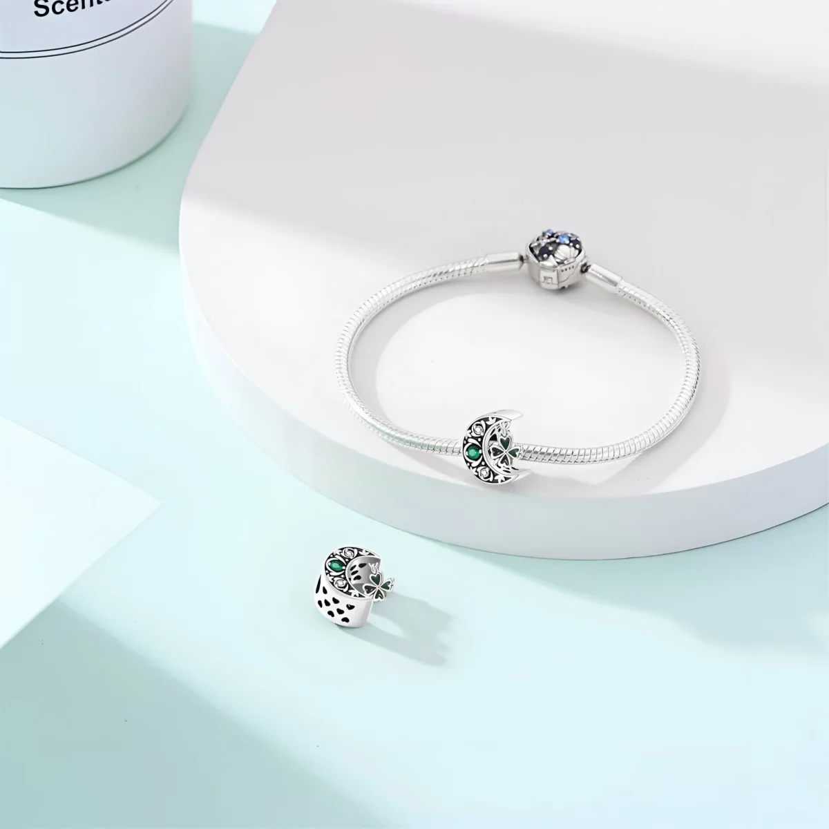 Ce charm se fixe facilement à votre bracelet grâce à son anneau solide, ajoutant une note de charme et de signification personnelle à votre collection de bijoux. Le cuivre plaqué argent assure une durabilité exceptionnelle et une apparence luxueuse. Les détails scintillants et les finitions soignées rendent ce charm aussi esthétique que porteur de bonnes vibrations.