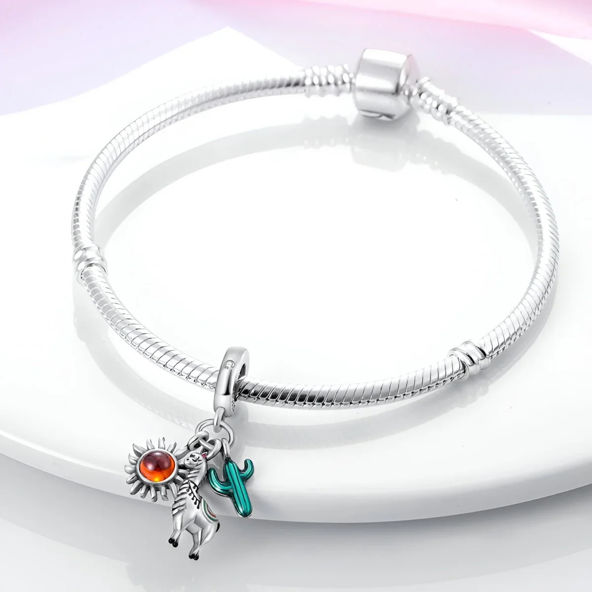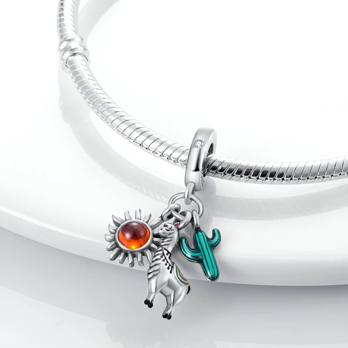 Explorez l’aventure et l’éclat avec ce charm unique en cuivre plaqué argent, représentant un alpaga accompagné de motifs ensoleillés et de cactus. Ce bijou enchanteur est conçu pour celles qui souhaitent apporter une touche d’originalité et de couleur à leur collection de charms. Parfait pour sublimer vos bracelets, ce charm ajoute une note de fantaisie et de dynamisme à votre style.