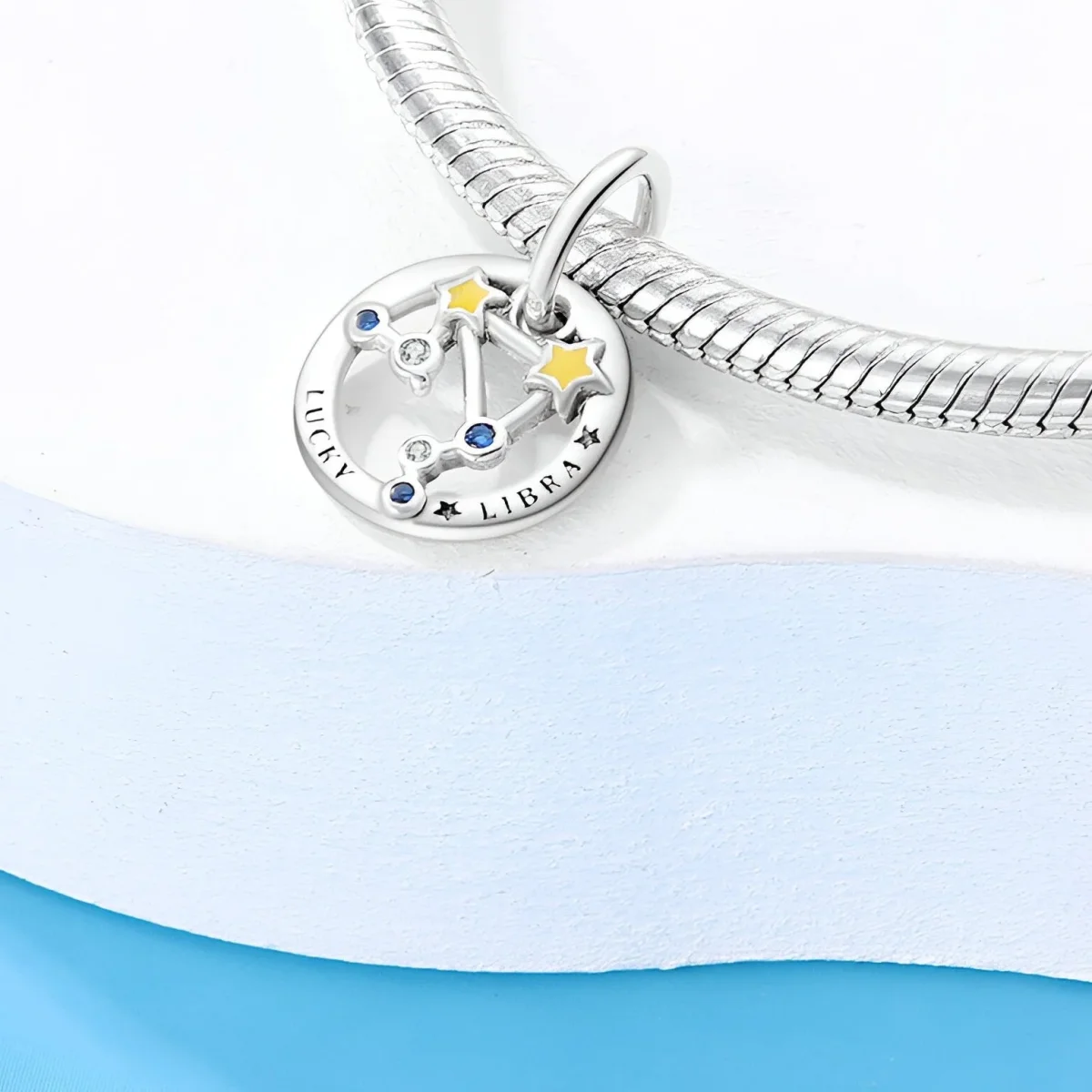 Idéal pour les passionnés de zodiaque, ce charm ajoute une touche sophistiquée et personnelle à votre bracelet ou collier préféré. Les pierres bleues et blanches apportent une note de raffinement intemporel, tandis que les détails en émail mettent en valeur la constellation avec une précision éclatante. Portez-le comme un symbole de votre quête d’harmonie et de beauté intérieure.