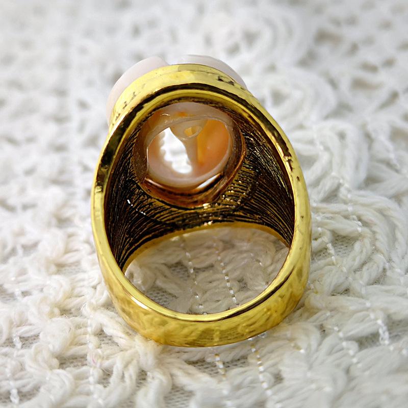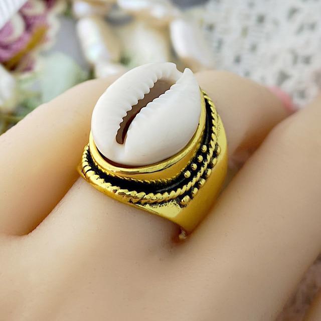 Bague coquillage cauri style chevalière avec gravures dorées
