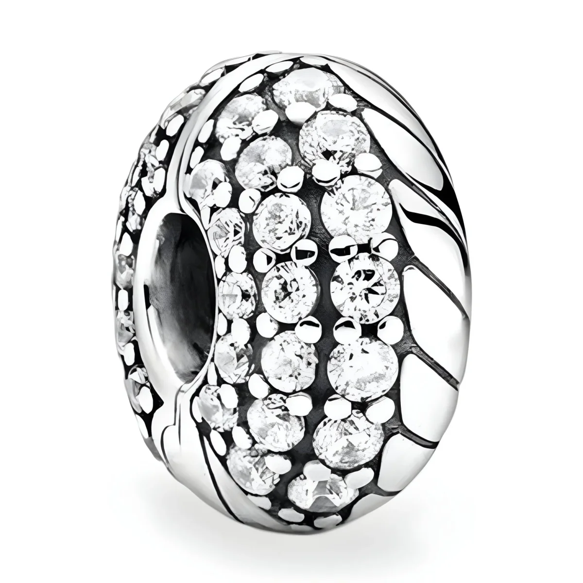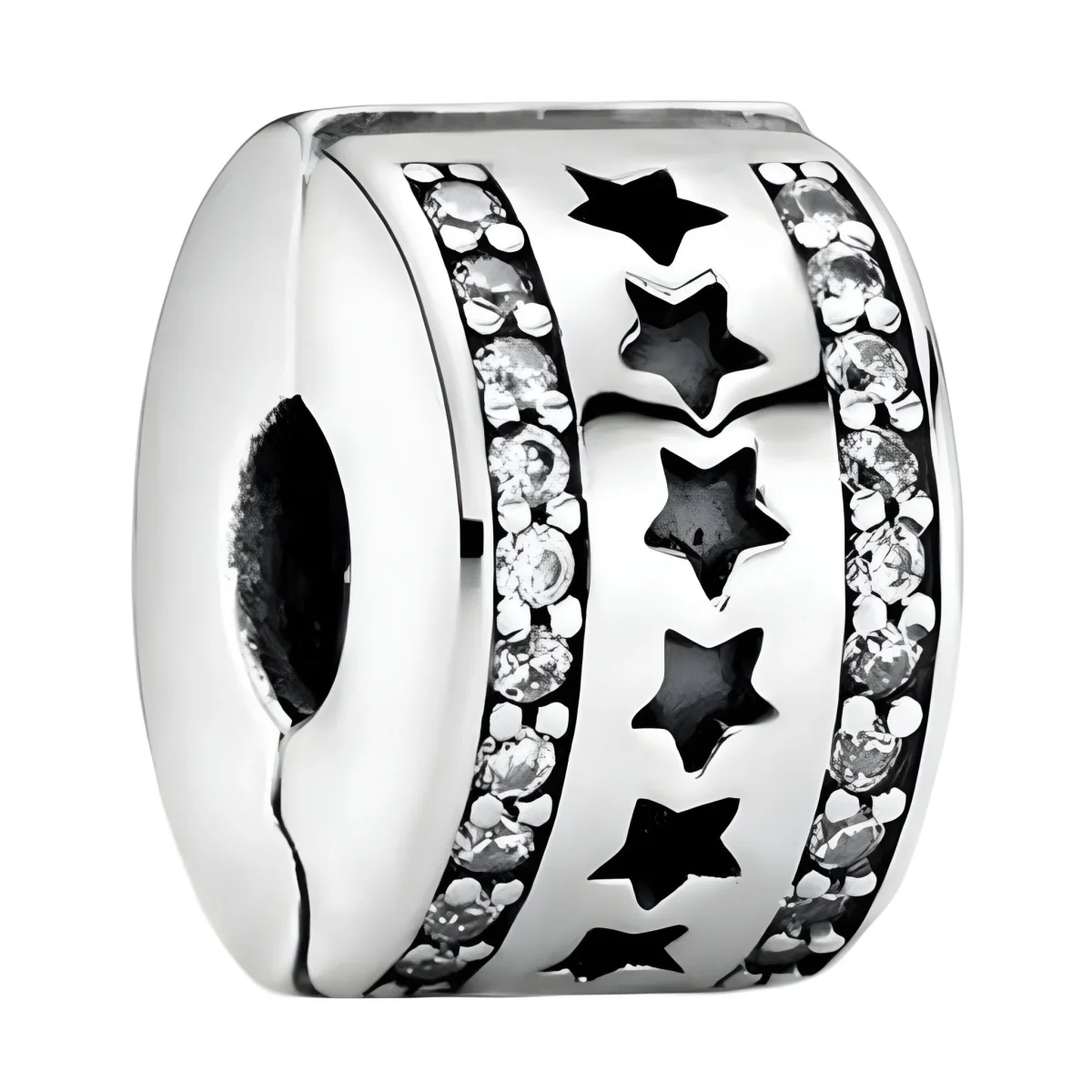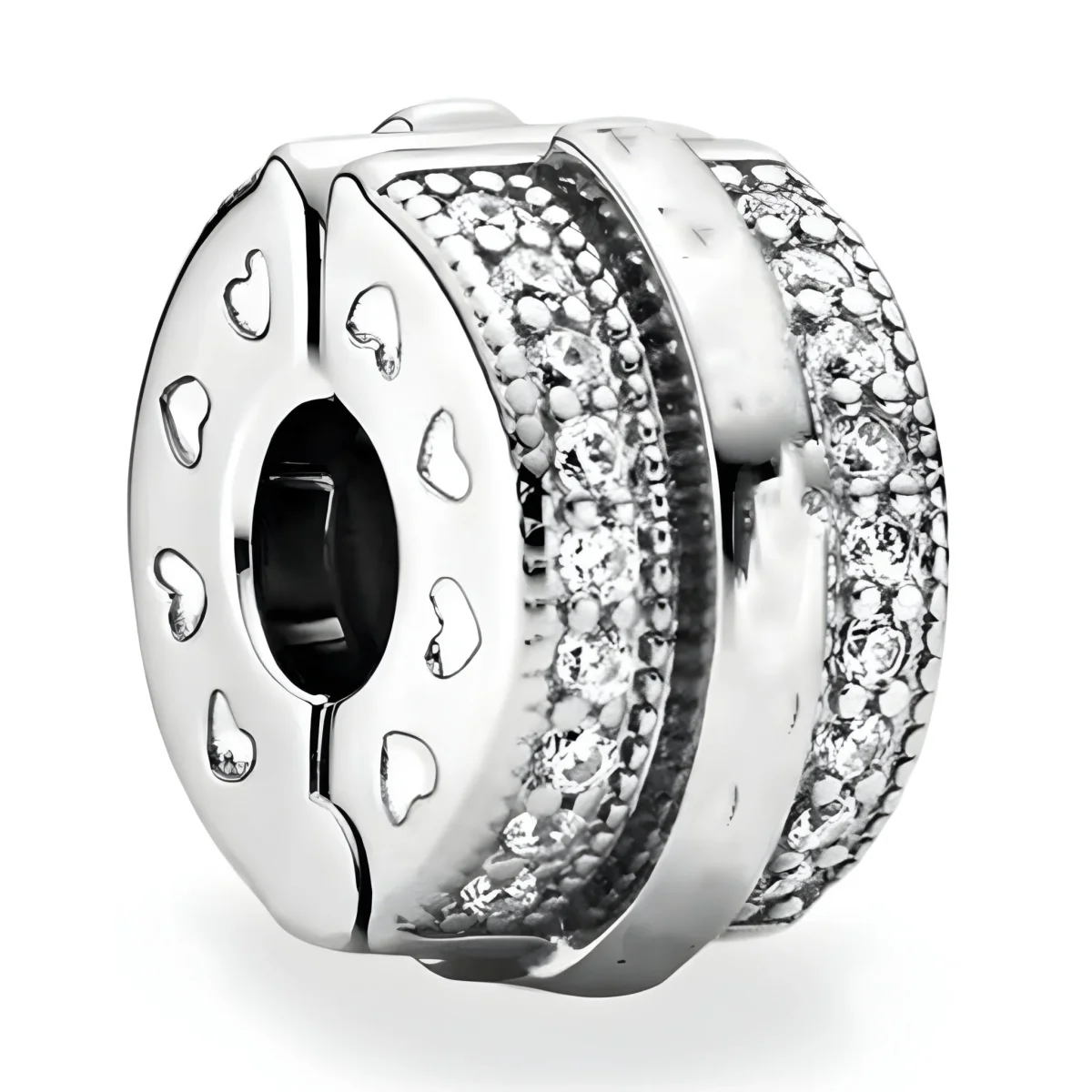 Laissez-vous séduire par l’élégance scintillante de ce charm espaceur qui ajoutera une touche d’éclat à votre bracelet. Conçu pour bloquer vos charms préférés, cet espaceur assure non seulement la sécurité de votre composition, mais offre aussi une touche raffinée et sophistiquée. Ses pierres lumineuses, minutieusement serties, reflètent la lumière à chaque mouvement, captivant tous les regards.