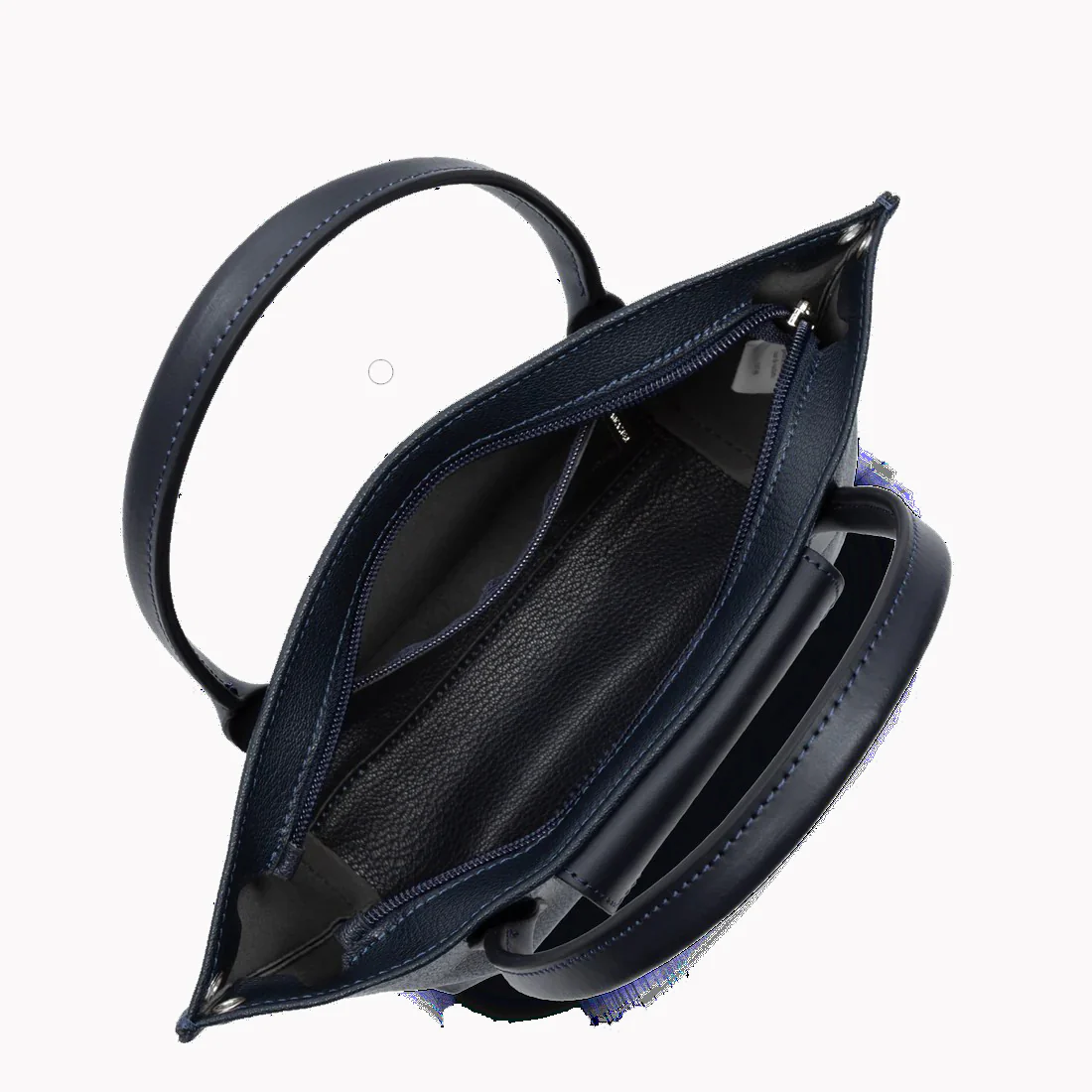 Sac à main cabas en textile enduit avec finitions en cuir de vachette. Il est doté de 2 anses pour le porter à la main et grande nouveauté: la bandoulière amovible et réglable pour le porter en travers! Côté organisation, il dispose d’une poche extérieure zippée au dos et d’une poche avant à rabat.