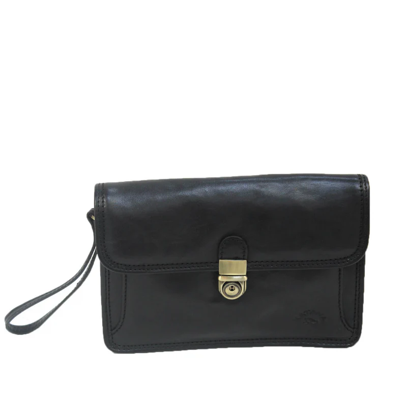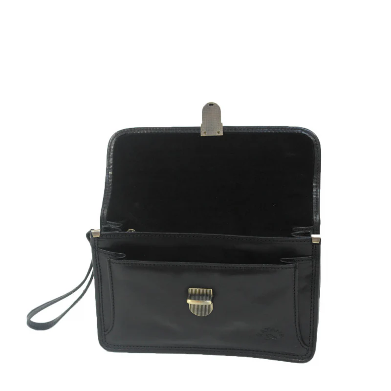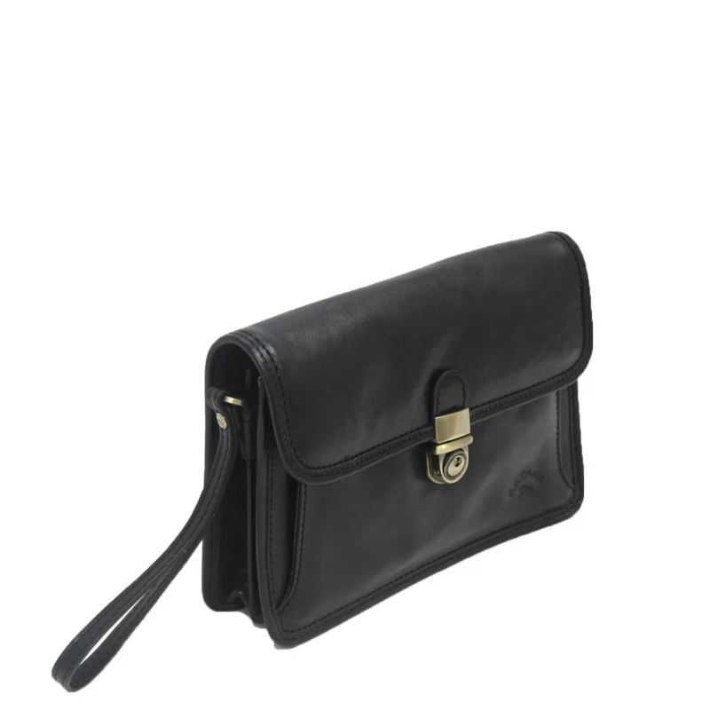 Cette pochette à rabat en cuir de vachette gras dispose de deux compartiments ainsi que de nombreux rangements. Doté d’une dragonne pour passer autour du poignet, cette pochette homme se porte également sous le bras. Cet article est prévu pour résister à un usage quotidien.