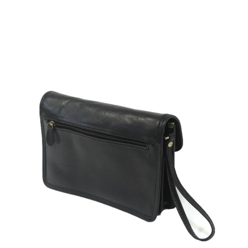 Cette pochette à rabat en cuir de vachette gras dispose de deux compartiments ainsi que de nombreux rangements. Doté d’une dragonne pour passer autour du poignet, cette pochette homme se porte également sous le bras. Cet article est prévu pour résister à un usage quotidien. Dimensions : 25 x 17 x 6